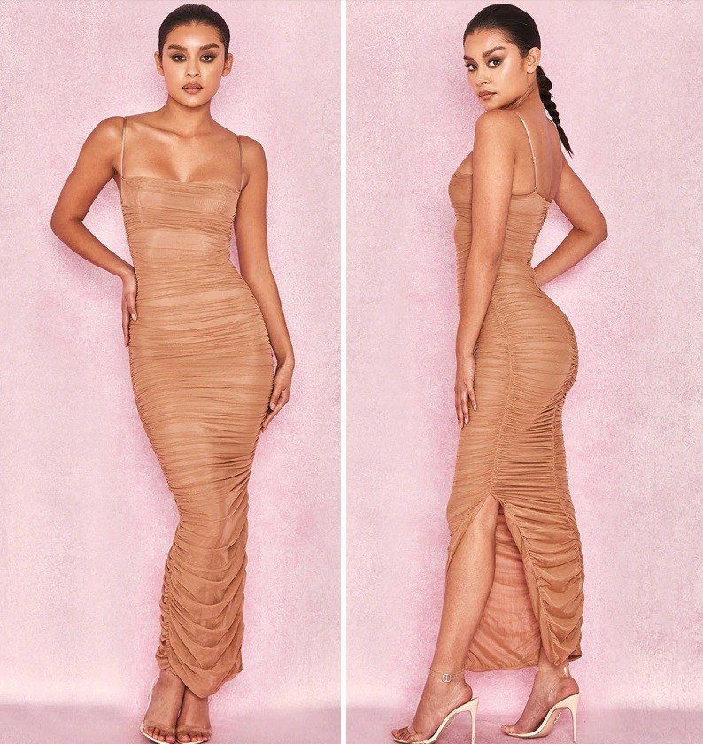 Alluring dress with thin straps.