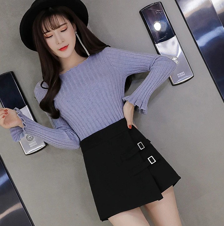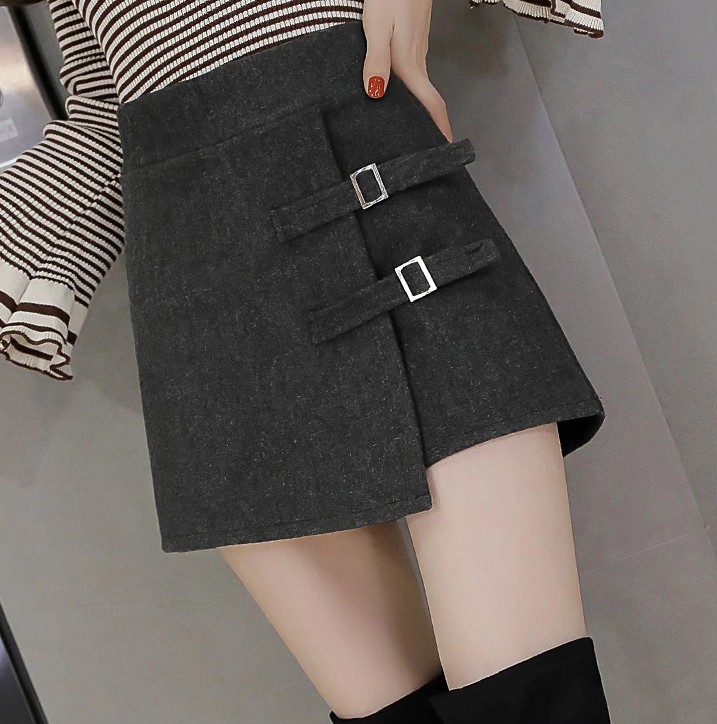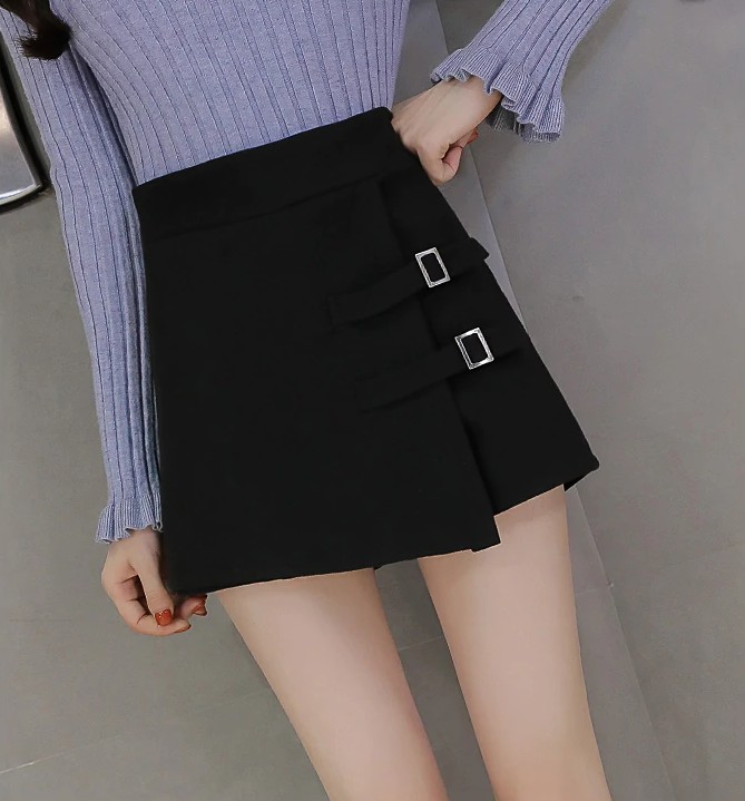 These buckle shorts in skirt style are a great choice for spring or summer days.