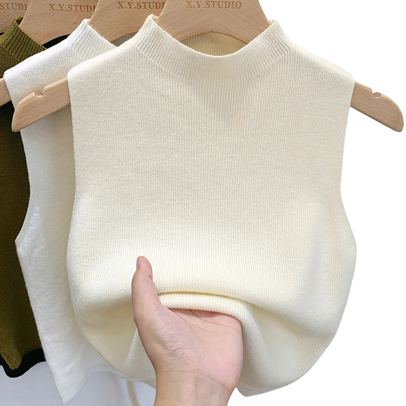 Women's Sleeveless Sweater Top Made of Polyester and Cotton Solid Colour Elegant Knitted Top with Round Neck Universal Size