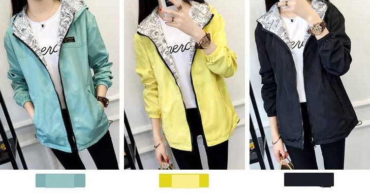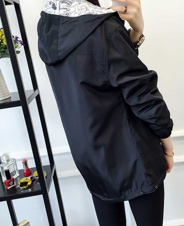 The jacket has a hood and a zip fastening, making it suitable for spring or autumn.