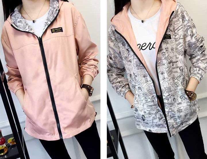 Be stylish with this reversible jacket, one side is colourful and when you turn it inside out, it features a comic print.