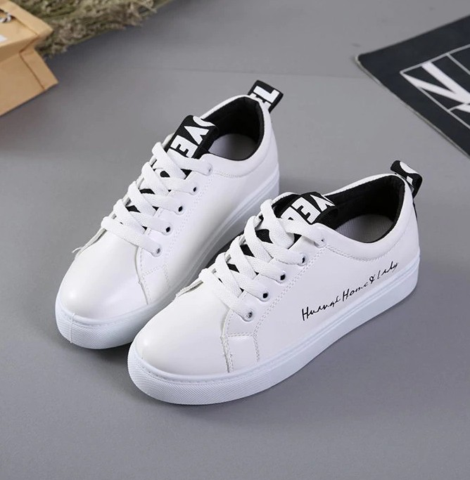 Every woman will love these stylish sneakers. The sneakers are laced up with shoelaces.