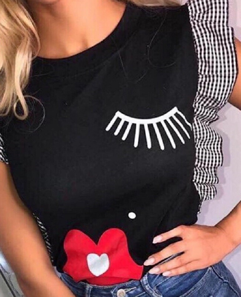 Women's T-shirt with Ruffled Sleeves