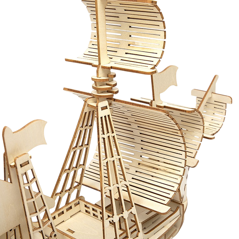 • 3D sailing boat puzzle with realistic details and sturdy wooden construction