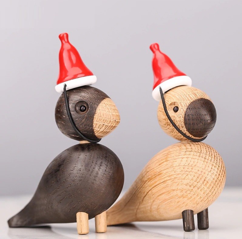 Wooden Bird Figurine with Hat 2 pcs