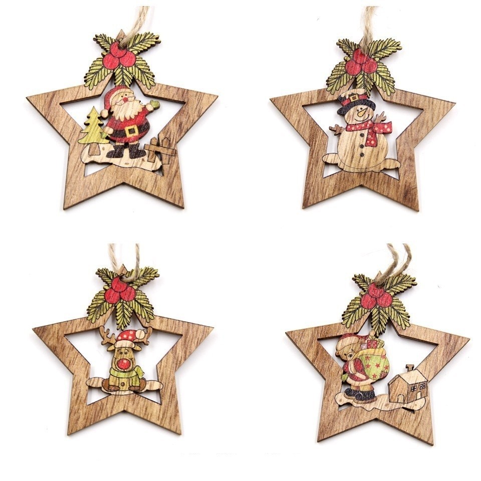 Wooden Christmas Decorations 4 pcs
