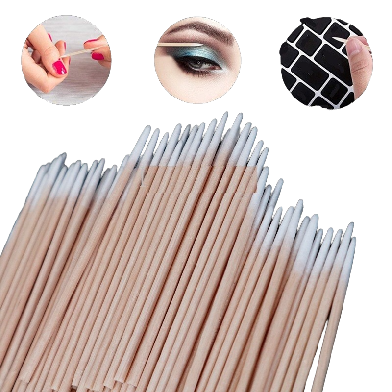 Cotton buds for removing eye makeup, eyebrows, eyeshadows and makeup. You can also use them for cleaning machinery, such as camera lenses or video recorder heads.