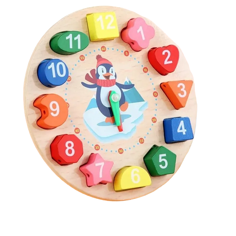 This unique educational product is designed specifically to support early childhood education. It consists of a wooden clock complemented by an attractive penguin figure that captures children's attention and motivates them to learn.