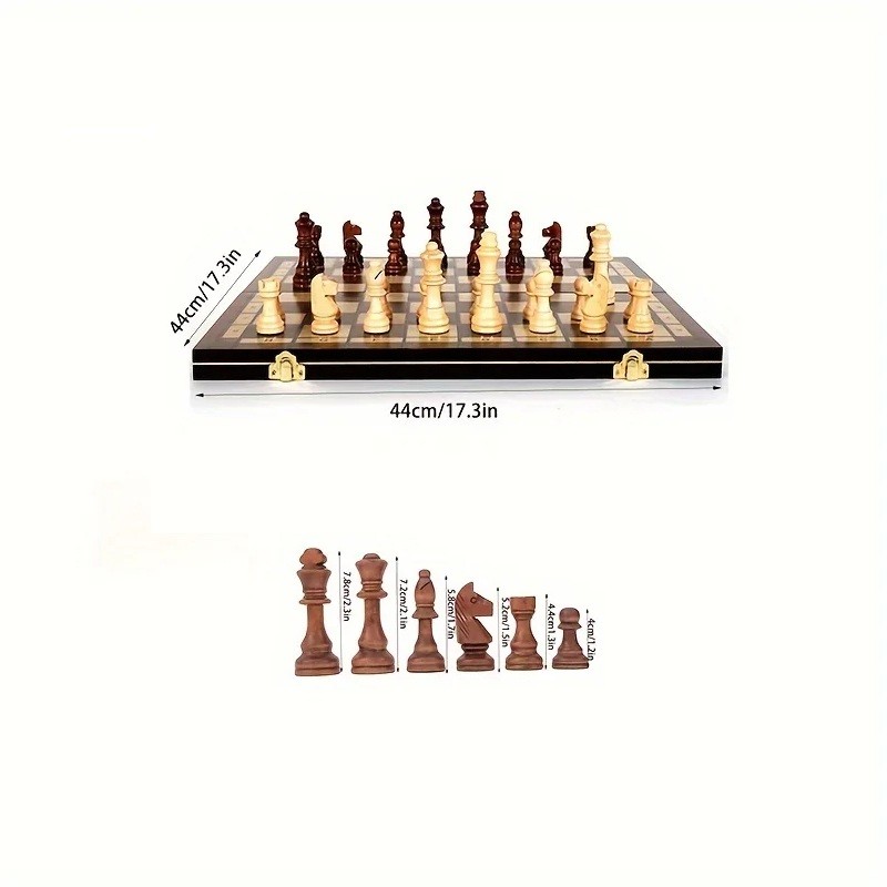 - Dimensions of the chessboard: 44x44 cm, compact size when folded