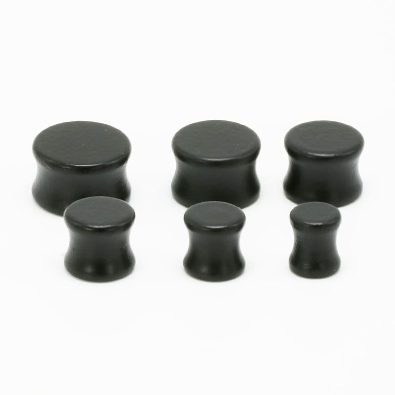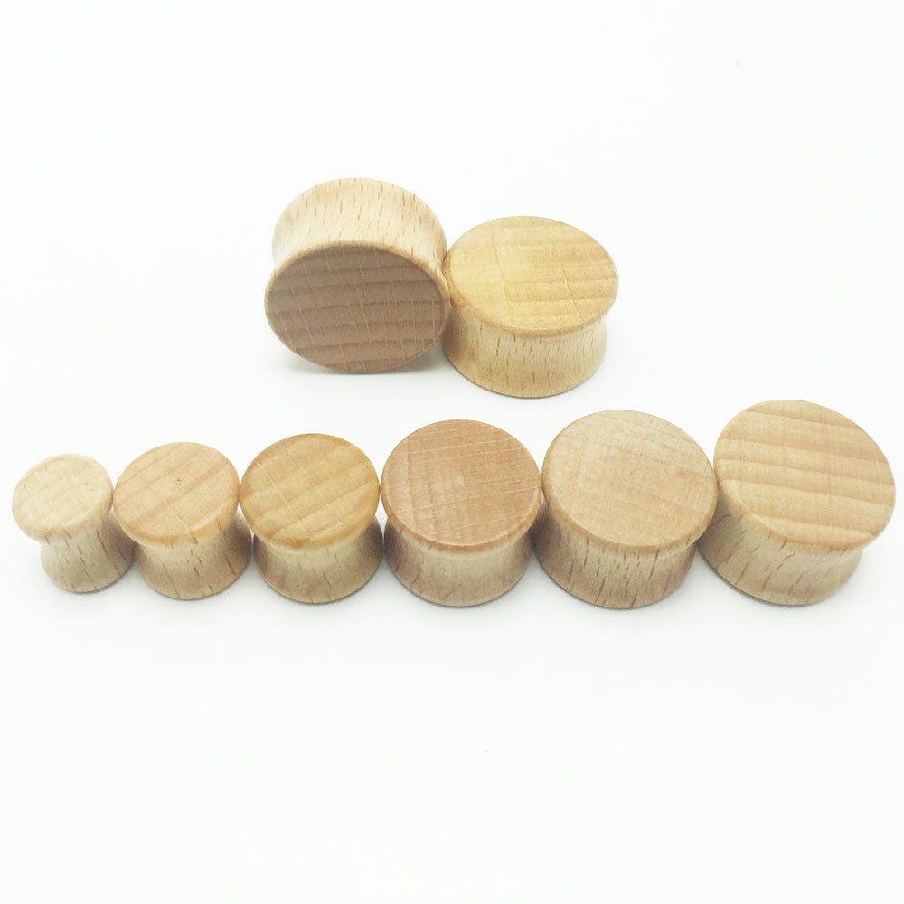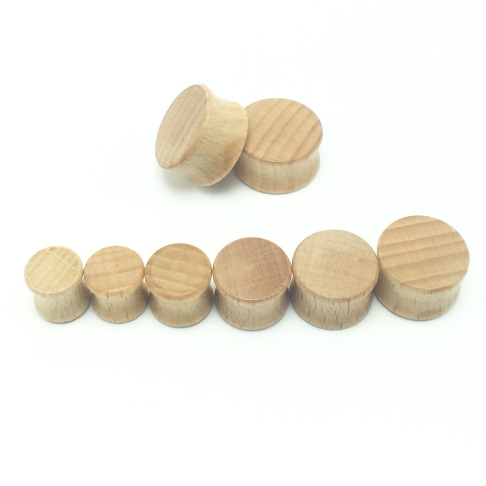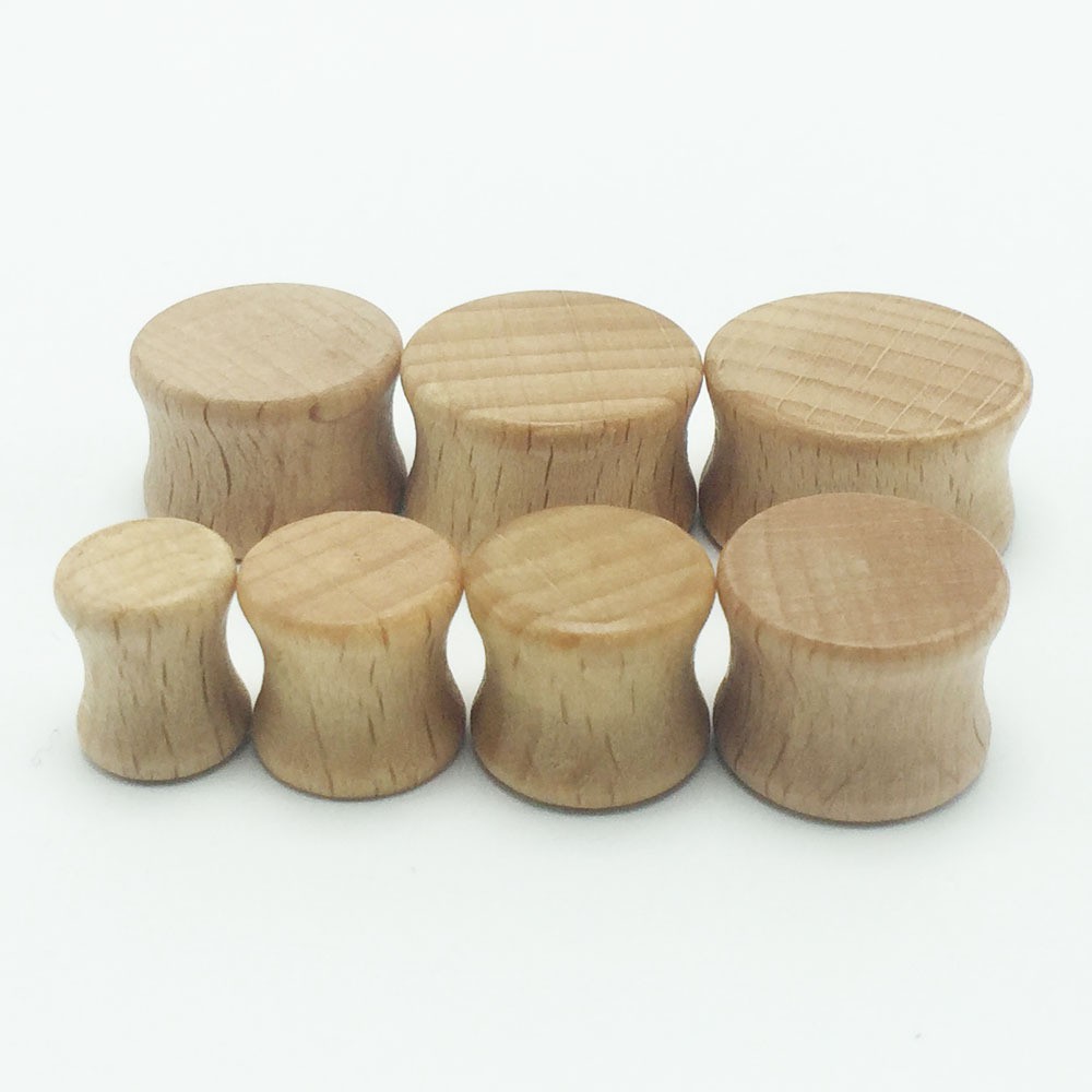 Wooden plugs have a concave shape – they are slightly tapered inwards and have a raised edge at the ends.