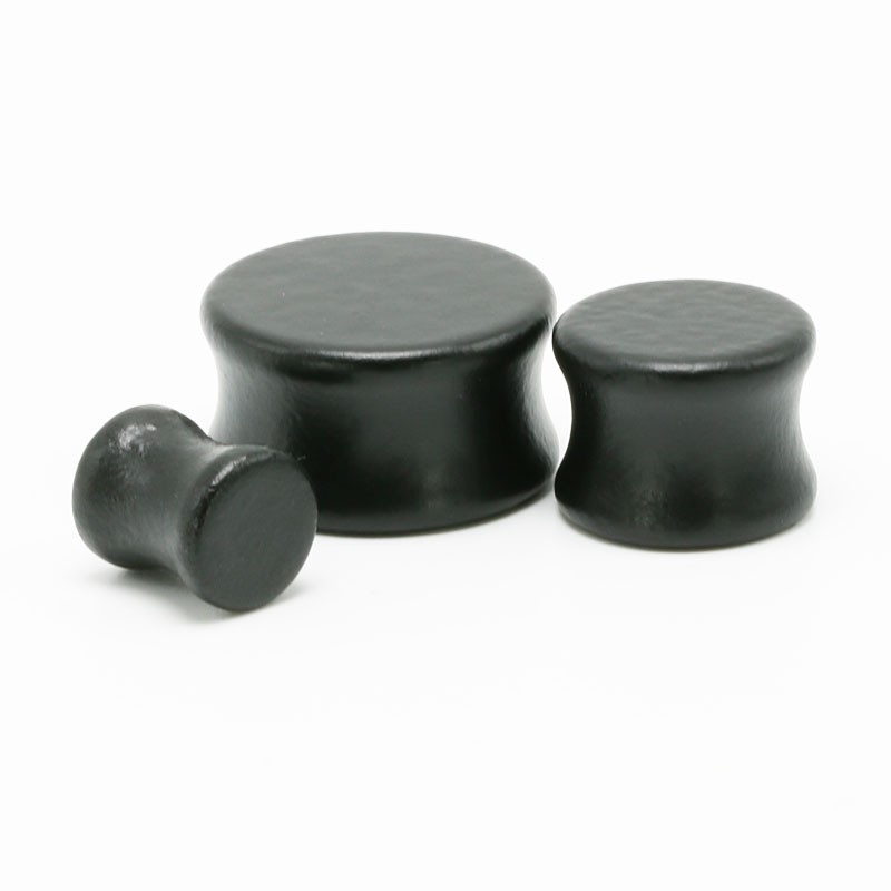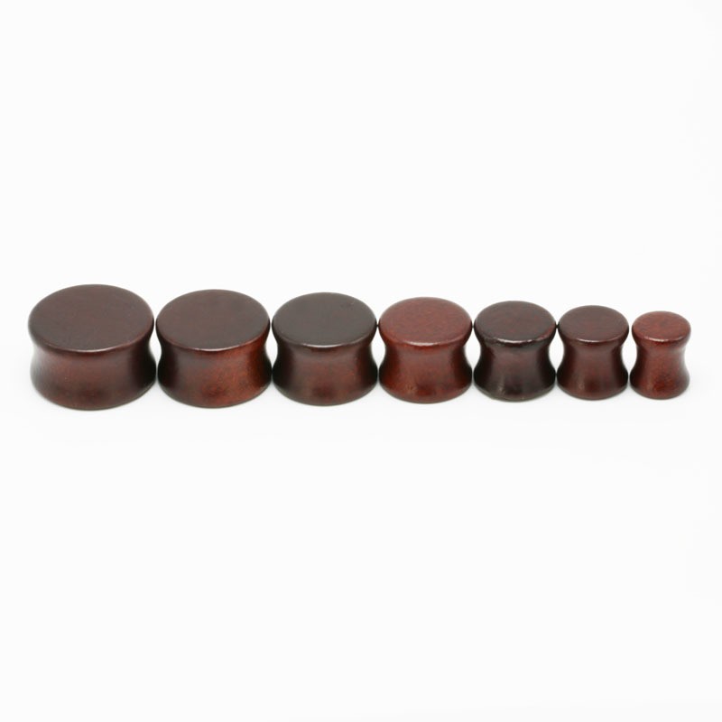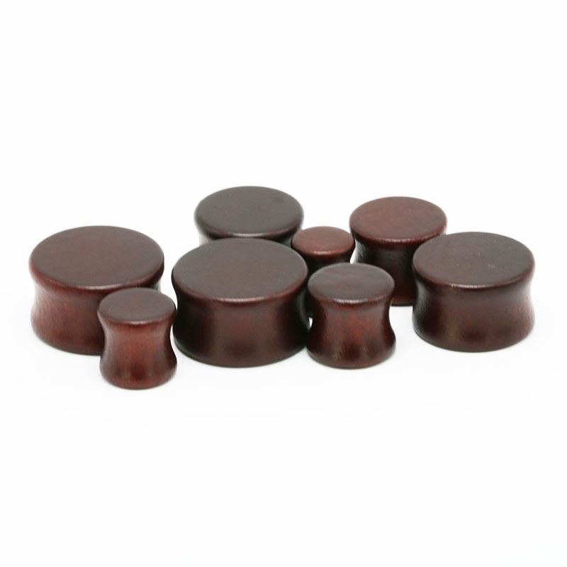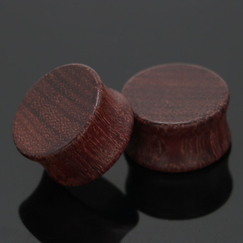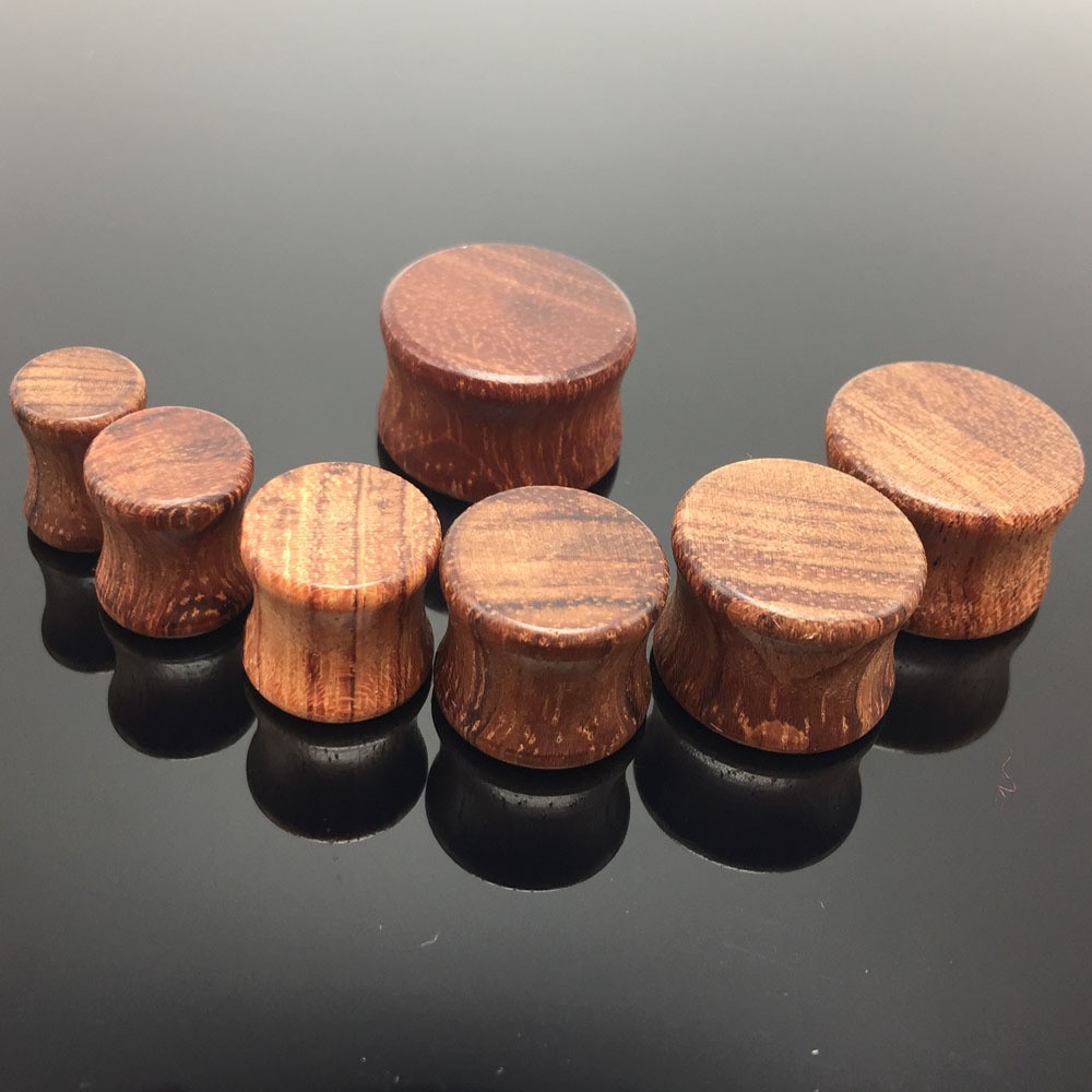 Wooden plugs have a concave shape – they are slightly tapered inwards and have a raised edge at the ends.