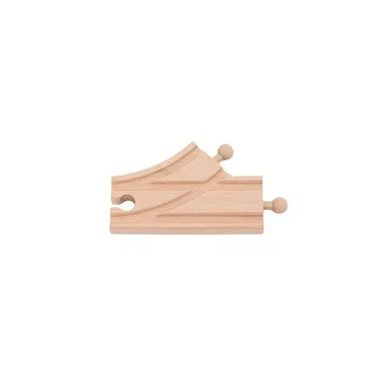 The small split wooden track allows the track to be led in two directions. A practical piece for expanding sets, creating branches, and adding variability to the train track. Full description